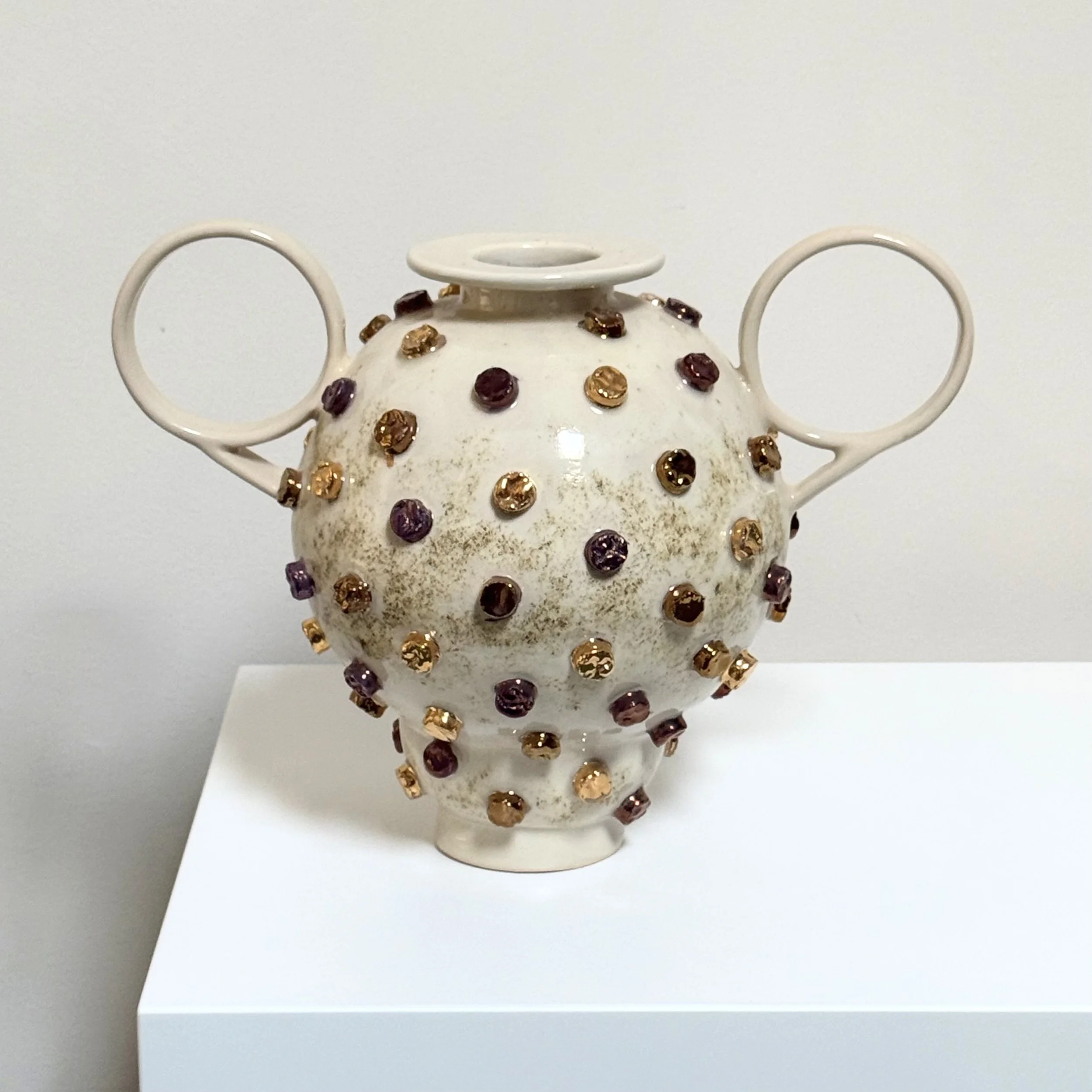 Ceramic material, glaze, copper, bronze + gold (10%) lustre